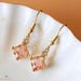 gold pink flower huggie earrings, gold hoops, earrings, gift, gift for her, jewelry, flower huggie, small hoops, flower gold huggie hoop